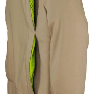 Features Patent Pending specially designed Vented Traps located vertically along each side of the back. The fashion in which the Vented Traps are constructed includes a layer of folded FR fabric combined with an interior layer of FR mesh that is 100% Modacrylic. This design does not expose you skin.
